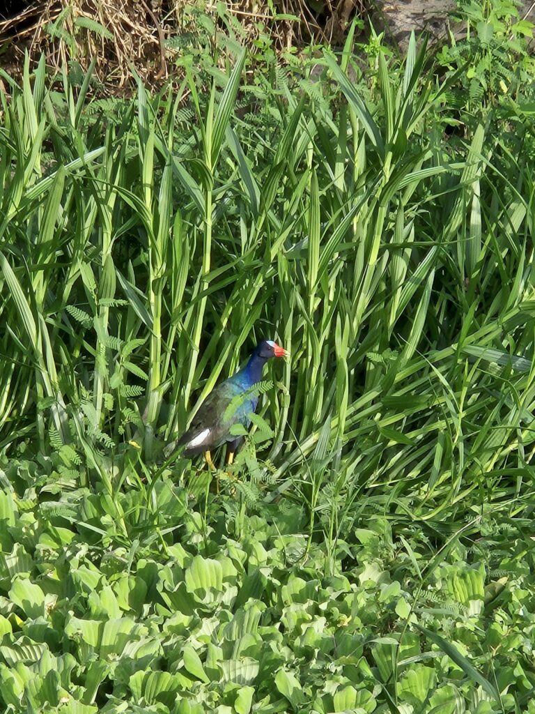 Você conhece o pássaro chamado de “frango-d’água-azul”? Em tupi o povo diz: “é uma jaçanã azul”. Recentemente, eu vi essa ave na minha aldeia (no município de Rio Tinto, na Paraíba). Veja na imagem.